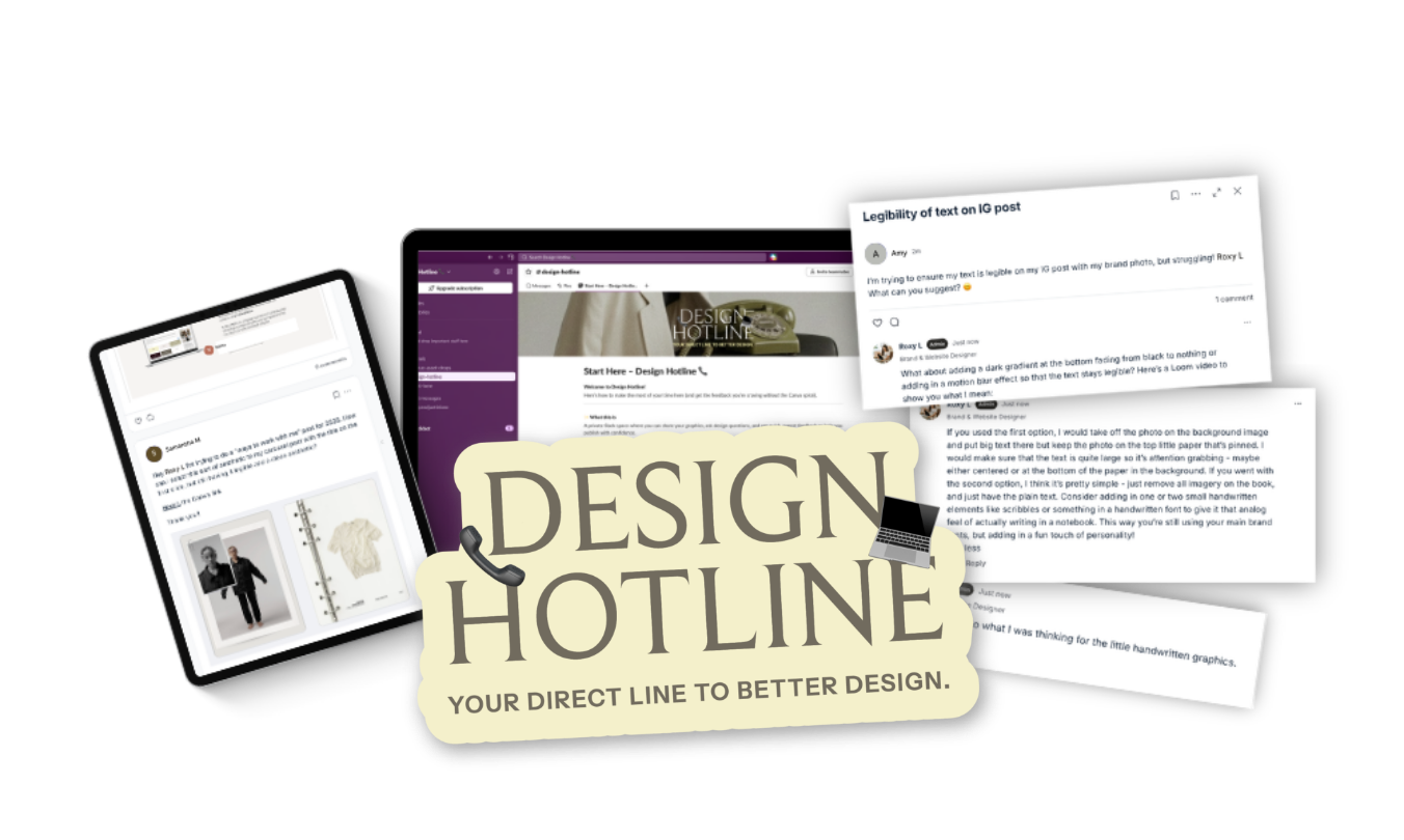 Design Hotline is a monthly design feedback subscription where you can share your graphics, layouts, and visual questions and get clear, professional input before you publish.