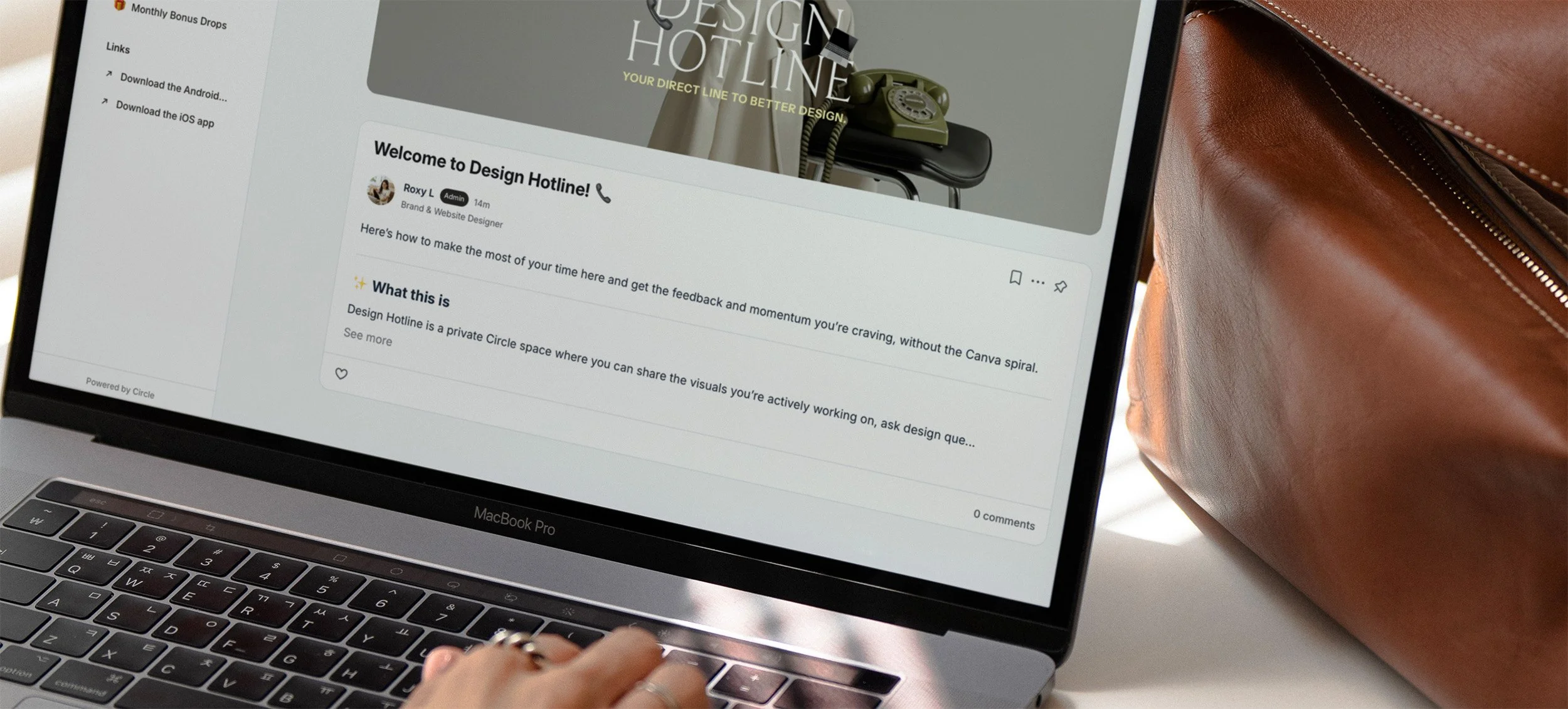Design Hotline lives inside a shared Circle space, but feedback is always specific to your work.