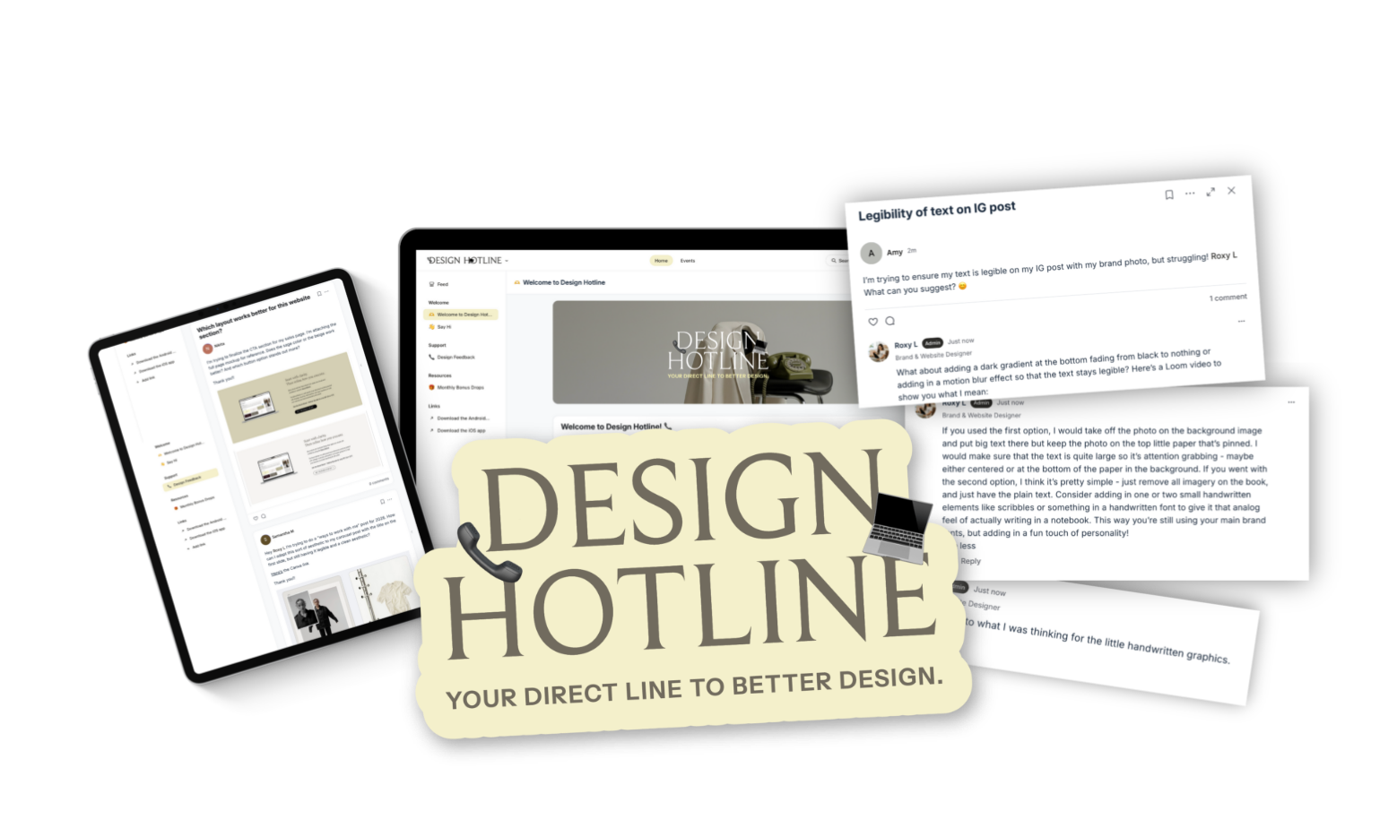 Design Hotline is a monthly feedback subscription for business owners who design their own work and want a second set of trained eyes before hitting publish.